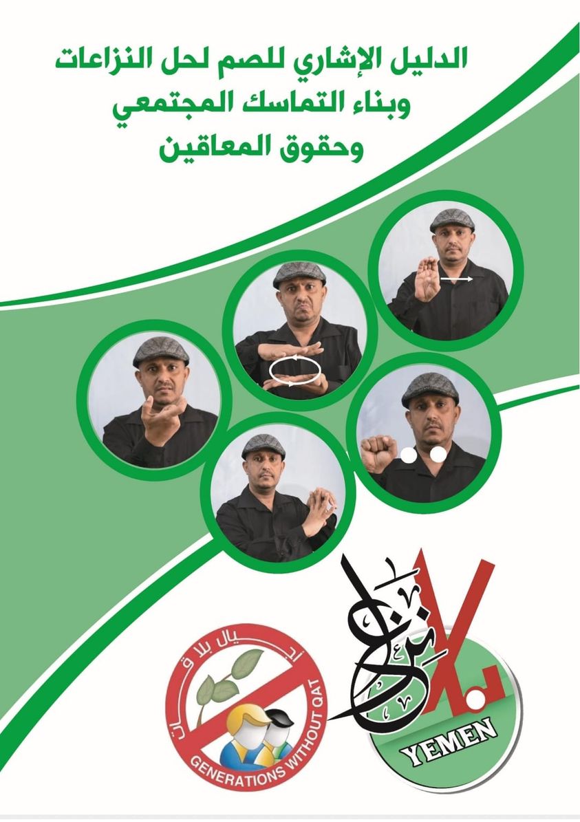 ( الدليل الإشاري مترجم للغة الإشارة مأخوذ من دليل لحل النزاعات وبناء التماسك المجتمعي والهدف من تحويله الى دليل أشاري ليسهل للصم معرفة محتوى الدليل المكتوب الخاص بحل النزاعات وبناء التماسك المجتمعي ويتضمن الدليل المترجم بلغة الاشارة اكثر من 400 كلمة ومفردة اشارية ) .