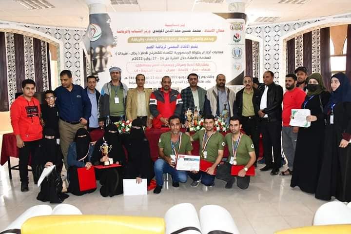 اختتمت يوم أمس الأربعاء 2022/7/27م بصالة النادي الترفيهي الرياضي بصنعاء بطولة الجمهورية الثامنة للشطرنج للصم (رجال، سيدات) التي نظمها الاتحاد اليمني لرياضة الصم على مدى ثلاثة أيام من 24-27 من الشهر الجاري بمشاركة 19 لاعبا ولاعبة يمثلون مراكز واندية وجمعيات الصم من سبع محافظات هي (الامانة، صنعاء، عدن، ذمار، الحديدة، إب، عمران) بتمويل من صندوق رعاية النشئ والشباب والرياضة .