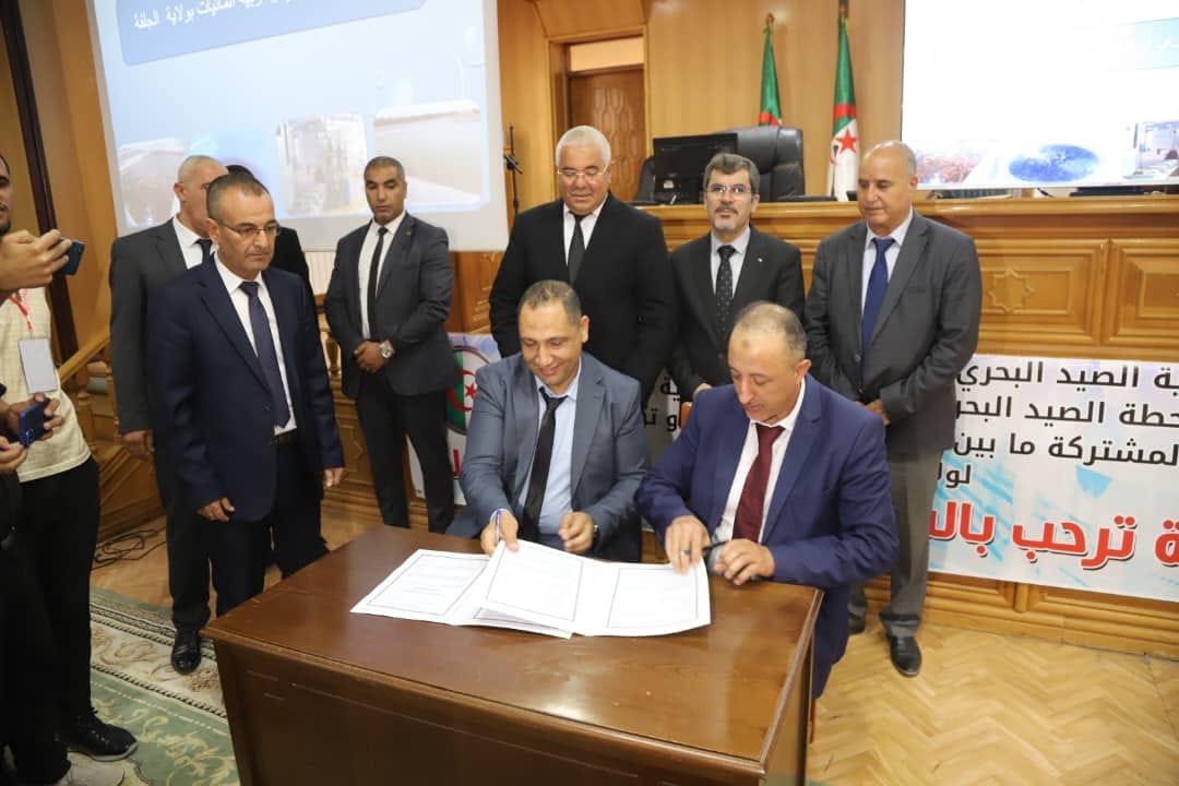 وأشرف السيد بداني بعد ذلك على مراسم توقيع المديرية الولائية للصيد البحري والمنتجات الصيدية على ثلاث اتفاقيات تعاون مع جامعة الجلفة ومديرية المصالح الفلاحية وكذا مديرية التكوين والتعليم المهنيين لذات الولاية, ليسلم عقبها شهادات ورخص اعتماد لمشاريع في تربية المائيات لمجموعة من الشباب المستثمرين.